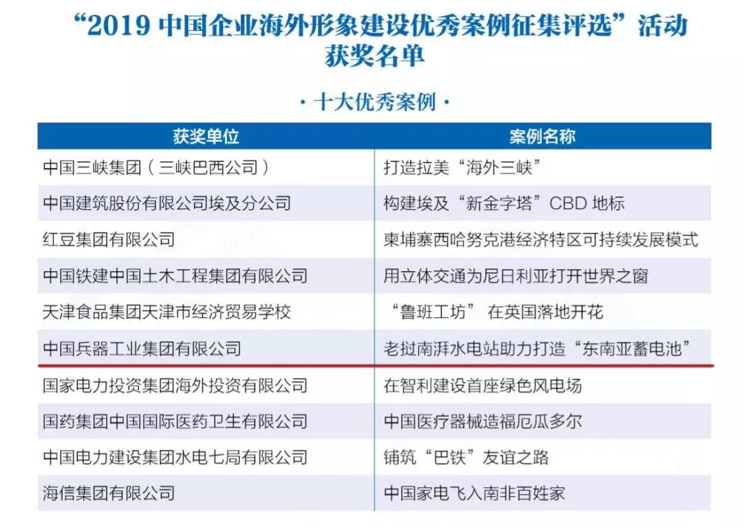兵器工業(yè)集團海外項目榮獲2019中國企業(yè)海外形象建設(shè)十大優(yōu)秀案例及卓越社會責任獎 |