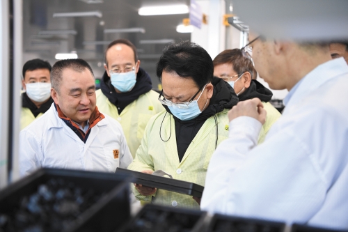 ?。保苍拢谷?,吉林省委書記景俊海到中國兵器工業(yè)集團東北工業(yè)集團有限公司,就深入貫徹黨的十九屆五中全會精神和習(xí)近平總書記視察吉林重要講話重要指示精神,全面落實省委十一屆八次全會精神,推動企業(yè)創(chuàng)新發(fā)展等情況進行調(diào)研。吉林省委常委、副省長吳靖平,吉林省委常委、省委秘書長胡家福,吉林省委常委、長春市委書記王凱一同調(diào)研。  圖為景俊海等在東北工業(yè)集團生產(chǎn)現(xiàn)場調(diào)研