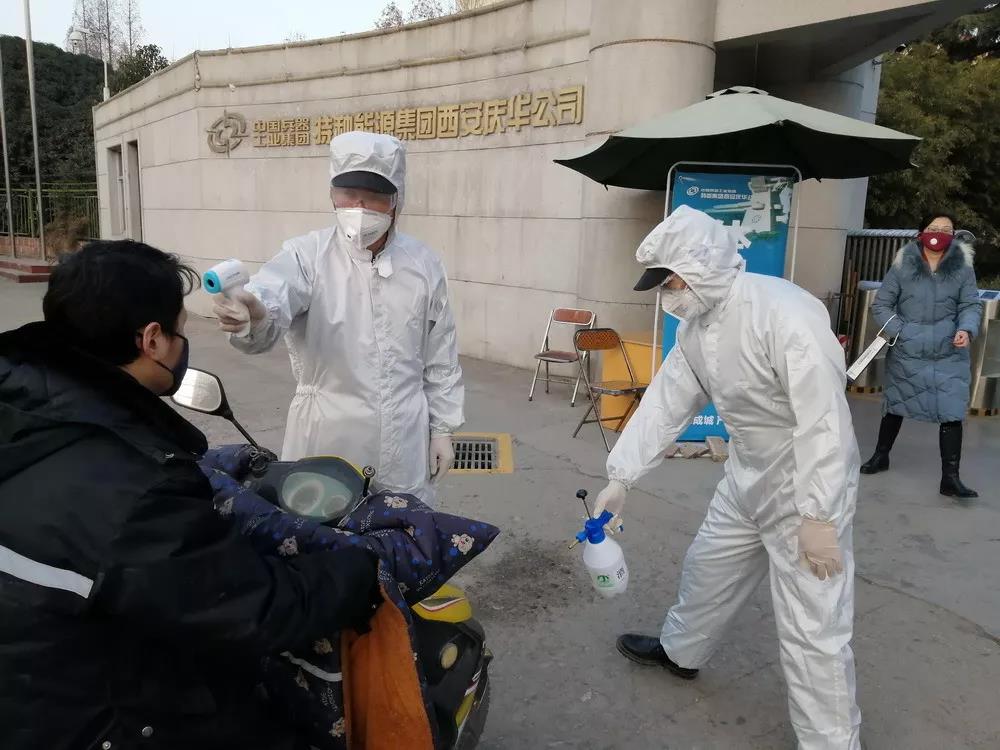 北化研究院集團瀘州北方公司建立了兩級值班聯(lián)絡機制,緊急采購口罩、消毒液、電子體溫測溫儀、消毒噴壺等防控物品,對出入人員進行體溫檢測,組織對各區(qū)域進行清潔消毒、通風透氣。同時,為化工苑社區(qū)、臨江苑社區(qū)、瀘化醫(yī)院、羅漢街道辦提供酒精以助消毒。對堅守崗位員工實行集中送餐、分餐制或員工自行返家用餐,并利用公司微信公眾號、廣播等媒體加強防控措施宣傳和輿論引導。