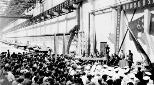 1959年是中華人民共和國建國十周年,工廠接受了生產(chǎn)32輛坦克交部隊(duì)編隊(duì)參加檢閱的任務(wù)。強(qiáng)烈的榮譽(yù)感使全廠上下歡欣鼓舞、斗志旺盛?!皼Q心書”、“保證書”像紛揚(yáng)的雪花貼滿墻壁。“天大的困難也要戰(zhàn)勝,堅(jiān)決為國爭光,為廠爭譽(yù)”的豪情在人們心中激蕩。