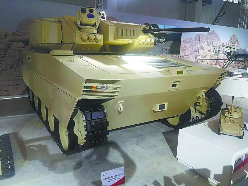 相比各種無(wú)人機(jī)和巡飛彈,珠海航展上的無(wú)人地面作戰(zhàn)車輛在作戰(zhàn)性能上也毫不遜色。除了VT-5U輕型坦克可以臨時(shí)客串“無(wú)人坦克”外,兵器工業(yè)集團(tuán)的VU-T10履帶式無(wú)人地面作戰(zhàn)平臺(tái)也堪稱重型無(wú)人車輛。VU-T10主要針對(duì)城市環(huán)境作戰(zhàn),選擇采用厚重的履帶式底盤,配備有30毫米口徑遙控武器站,未來還可以根據(jù)需要配備4枚“紅箭-12”反坦克導(dǎo)彈,加載7.62毫米機(jī)槍,其武器配備的豐富程度相比俄羅斯BMPT“終結(jié)者”火力支援車也不遜色,卻沒有了后者在巷戰(zhàn)中可能遭遇人員傷亡的風(fēng)險(xiǎn)。