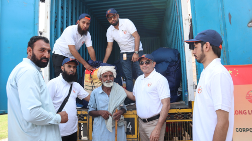 考慮到災(zāi)情期間交通不便,為了確保運輸時效,項目組成立了由21人組成的運輸保障志愿小分隊。9月6日,志愿小分隊連夜驅(qū)車400公里趕往災(zāi)區(qū),親手將救災(zāi)物品免費發(fā)放到當(dāng)?shù)刎毨転?zāi)民眾手中,極大鼓舞了當(dāng)?shù)孛癖娍箵艉闉?zāi)的士氣?!盁o論遇到什么困難,中國總是第一個愿意幫助巴基斯坦的國家。感謝中國公司給予我們的支持與幫助,中巴友誼萬歲!”當(dāng)?shù)鼐用窦娂姳硎靖兄x。