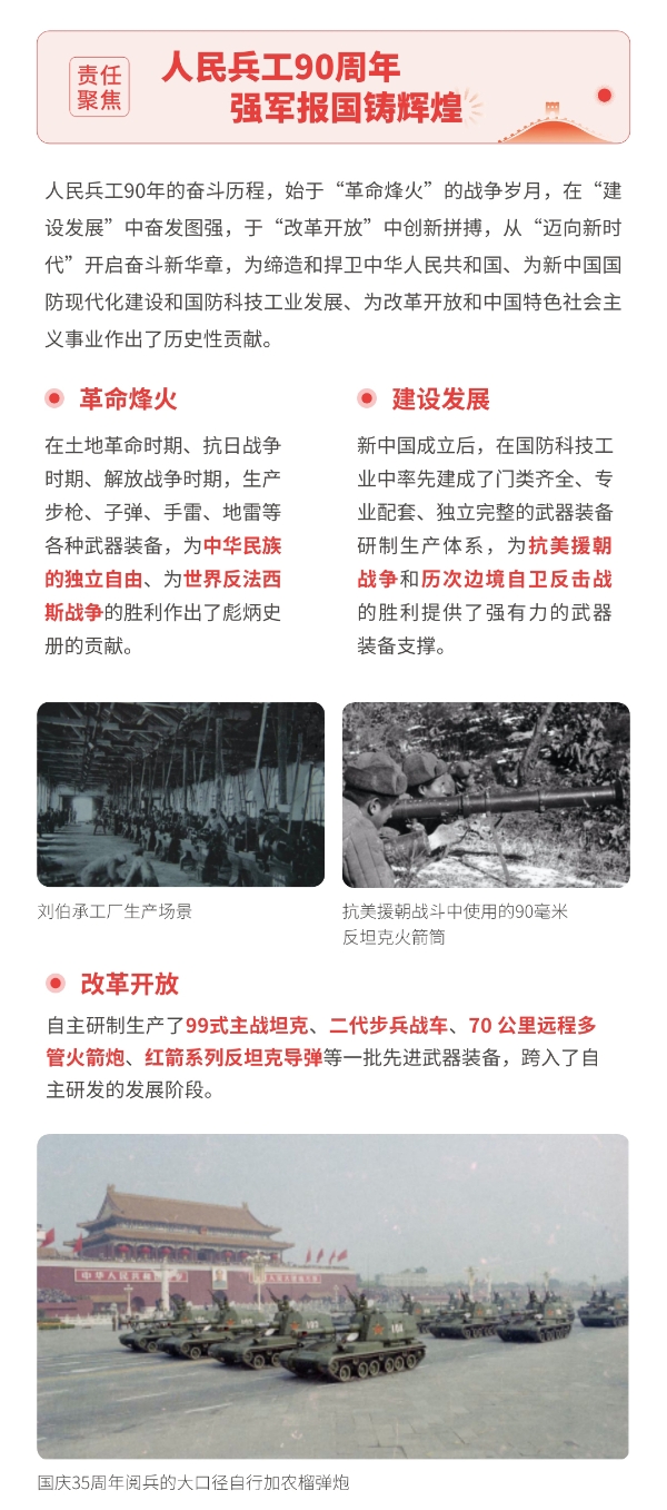近日,兵器工業(yè)集團正式發(fā)布第十三份年度社會責任報告——《中國兵器工業(yè)集團有限公司2021年社會責任報告》,以“用心守護和平、用力爭創(chuàng)一流、用情溫暖社會”為主題,從恪守強軍首責、服務(wù)經(jīng)濟建設(shè)、共創(chuàng)美好生活三個維度,向社會全面披露2021年度履責實踐和履責業(yè)績。《報告》連續(xù)第三年獲得中國企業(yè)社會責任報告評級專家委員會“五星佳”評級,兵器工業(yè)集團成為軍工行業(yè)唯一連續(xù)11年獲得五星及五星佳最高評級的企業(yè)。 一圖解碼兵器工業(yè)的“責任力量” |