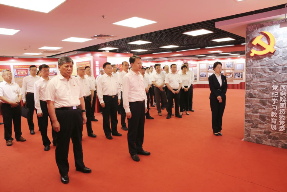 黨組同志認(rèn)真聆聽(tīng)講解,集體參觀了“政治鑄魂——習(xí)近平總書(shū)記重要論述”“紀(jì)法樹(shù)威——黨規(guī)黨紀(jì)相關(guān)要求”“傳承增信——黨的優(yōu)良傳統(tǒng)”“嚴(yán)管促行——國(guó)務(wù)院國(guó)資委黨委紀(jì)律建設(shè)成效”“警示立戒——反面典型案例”“實(shí)干建功——工作展望”6個(gè)篇章,通過(guò)觀看圖文、視頻等形式多樣的展品展示,進(jìn)一步學(xué)習(xí)領(lǐng)會(huì)習(xí)近平總書(shū)記關(guān)于國(guó)資央企的重要指示批示精神和黨的紀(jì)律建設(shè)的重要論述,學(xué)習(xí)把握《中國(guó)共產(chǎn)黨紀(jì)律處分條例》新增、修訂內(nèi)容,全面了解國(guó)務(wù)院國(guó)資委黨委強(qiáng)化政治引領(lǐng)、加強(qiáng)政治監(jiān)督、深化紀(jì)律建設(shè)、抓實(shí)巡視工作等方面的做法舉措,集中觀看近年來(lái)國(guó)資央企發(fā)生的具有代表性的違規(guī)違紀(jì)案例,深刻領(lǐng)悟以習(xí)近平同志為核心的黨中央堅(jiān)持黨要管黨、全面從嚴(yán)治黨取得的歷史性成就,全面感受國(guó)務(wù)院國(guó)資委黨委全面從嚴(yán)治黨取得的重要成果。