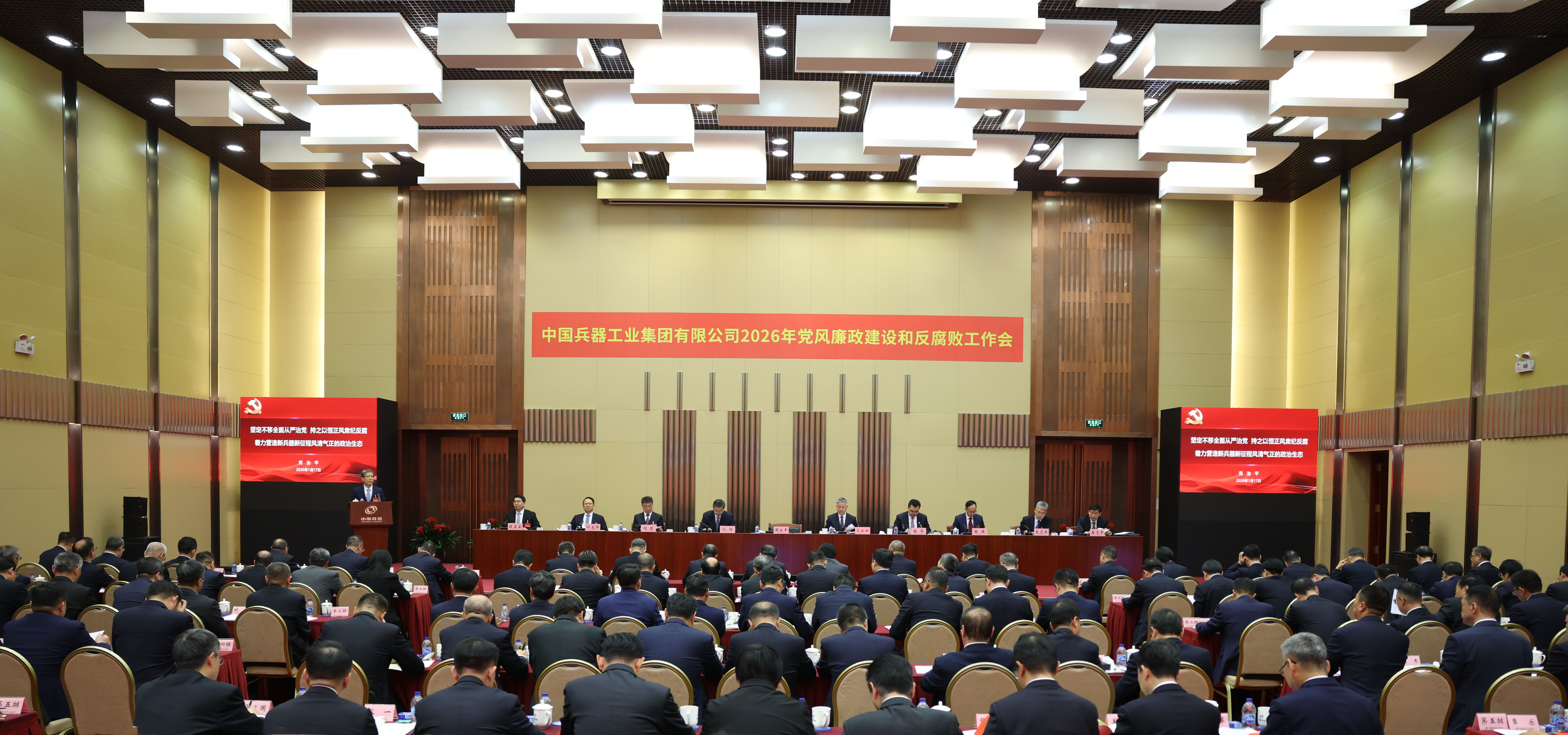 1月17日,中國兵器工業(yè)集團(tuán)有限公司召開2026年黨風(fēng)廉政建設(shè)和反腐敗工作會(huì)議,會(huì)議以習(xí)近平新時(shí)代中國特色社會(huì)主義思想為指導(dǎo),深入學(xué)習(xí)貫徹黨的二十大和二十屆四中全會(huì)精神,全面貫徹落實(shí)二十屆中央紀(jì)委五次全會(huì)精神,總結(jié)工作、部署任務(wù),以更高標(biāo)準(zhǔn)、更實(shí)舉措推進(jìn)全面從嚴(yán)治黨,為實(shí)現(xiàn)集團(tuán)公司“十五五”時(shí)期目標(biāo)任務(wù)提供堅(jiān)強(qiáng)保障。集團(tuán)公司黨組書記、董事長周治平作了《堅(jiān)定不移全面從嚴(yán)治黨,持之以恒正風(fēng)肅紀(jì)反腐,著力營造新兵器新征程風(fēng)清氣正的政治生態(tài)》的講話,并與集團(tuán)公司各部門、各子集團(tuán)和直管單位簽訂《黨風(fēng)廉政責(zé)任書》。駐集團(tuán)公司紀(jì)檢監(jiān)察組組長、集團(tuán)公司黨組成員陳正云傳達(dá)了二十屆中央紀(jì)委五次全會(huì)精神,通報(bào)了駐集團(tuán)公司紀(jì)檢監(jiān)察組2025年重點(diǎn)工作和查處典型案件暴露出來的問題并提出意見要求。集團(tuán)公司總經(jīng)理、黨組副書記馬云雙主持會(huì)議。