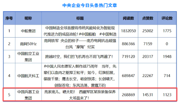 兵器工業(yè)集團(tuán)2篇文章入選中央企業(yè)新媒體“熱門文章” |