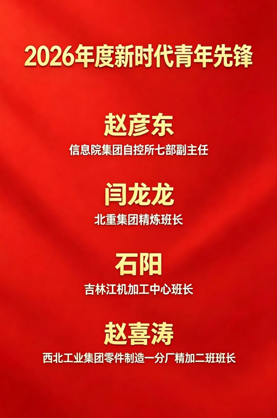 祝賀!兵器工業(yè)集團4名個人榮獲2026年度新時代青年先鋒 |